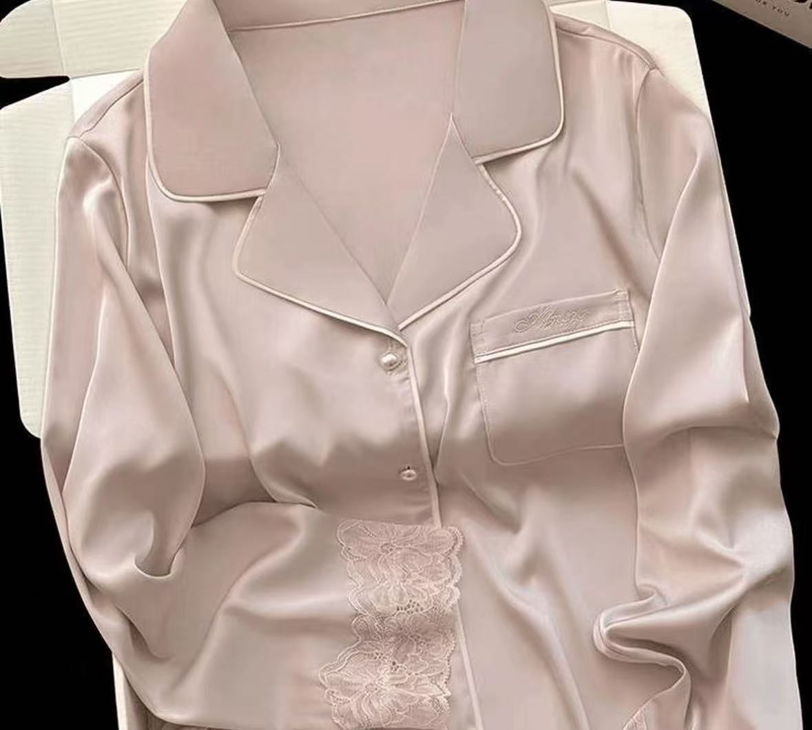 シルクパジャマ、レース付きセットアップ、ギフト向け衣料