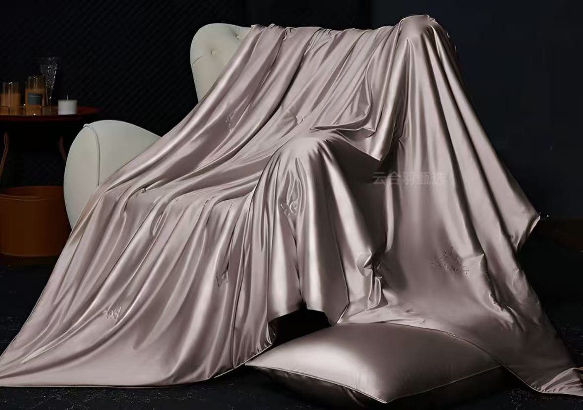 ソファ掛けやベッドスローとして見せやすい軽やかなシルクブランケットです。空間演出の一部として提案しやすく、寝具とインテリアの中間商材として扱えます。